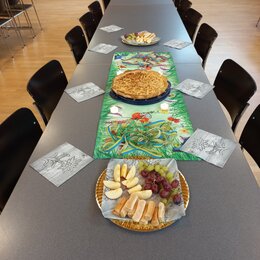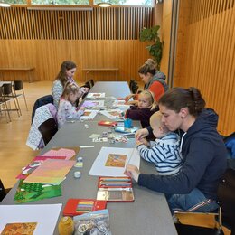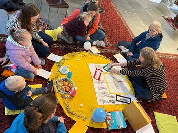Wenn die kleinen Kinder singen, aufmerksam dem Gebet lauschen, staunen und den Segen von Gott spüren - dann ist Gottesdienstzeit. Allerdings auf kindgerechte Art und alle Sinne ansprechend. So durften sie sehen, wie sich die Geschichte aus der Bibel vom grossen Gastmahl entwickelt und wer am Schluss alles eingeladen ist. So wie sie selber bei Gott immer willkommen sind. Als Erinnerung an diesen Zuspruch durften die Kleinen mit ihren Mamis Tischsets verzieren und mit nach Hause nehmen. Beim feinen Znüni am schön dekorierten Tisch genossen wir das Zusammensein.