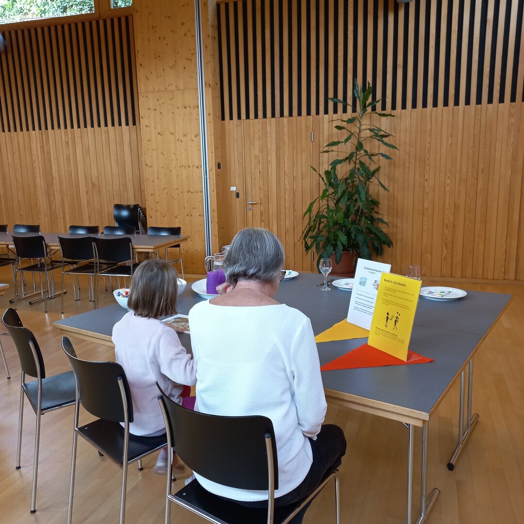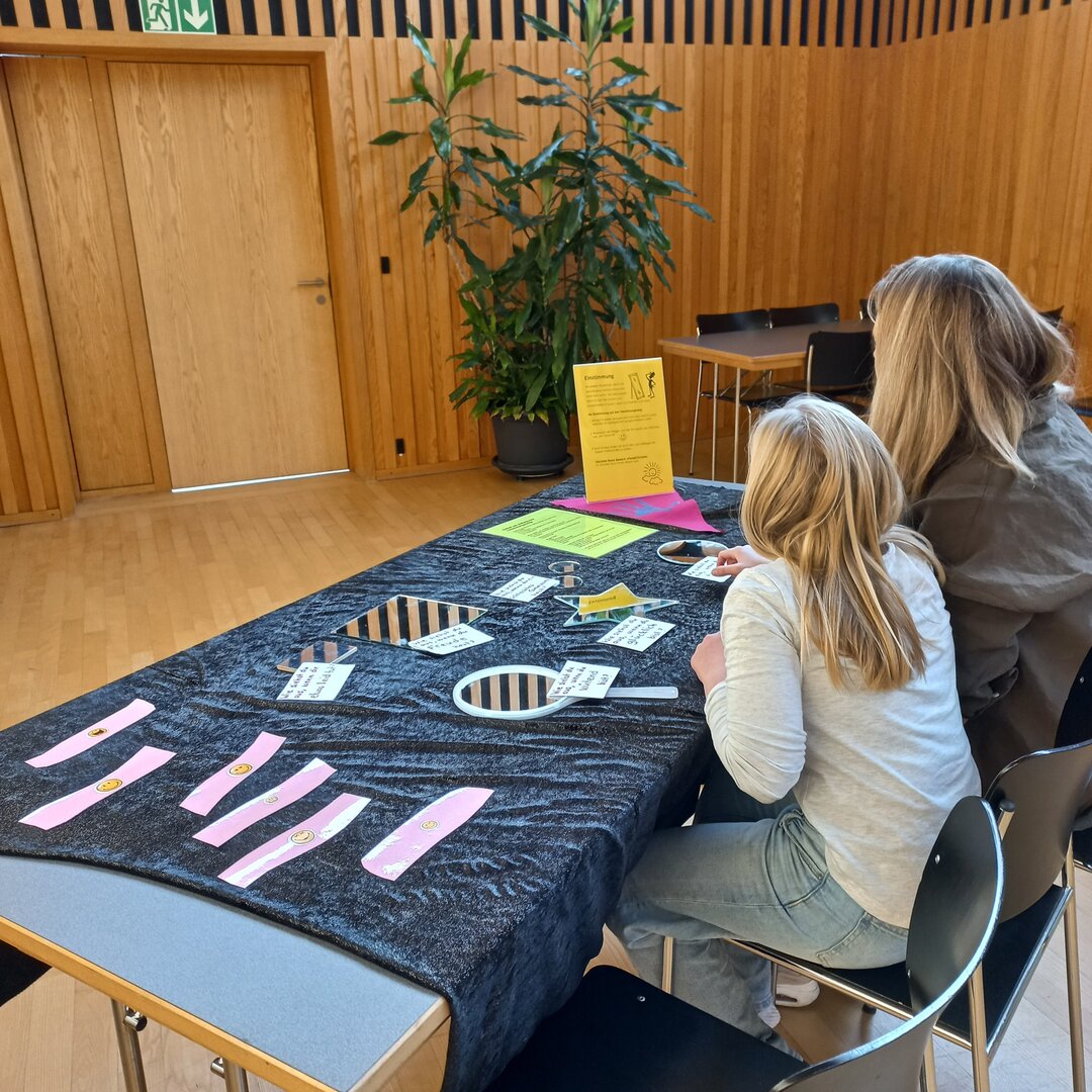 Die Kinder besuchten einzeln mit ihrer Vertrauensperson (meistens Eltern oder Grosseltern) verschiedene Räume. Besinnlich oder spielerisch konnten sie sich über die Sonnen- und Schattenseiten im Alltag austauschen.