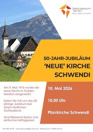 Dieses runde Jubiläum werden wir mit einem feierlichen Gottesdienst, anschliessendem Apéro und einfachem Essen sowie einem kleinem Rahmenprogramm begehen.