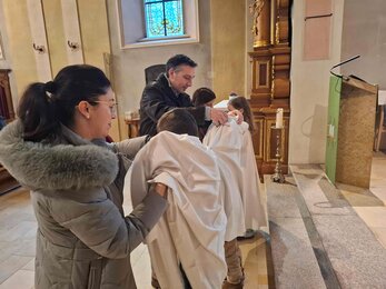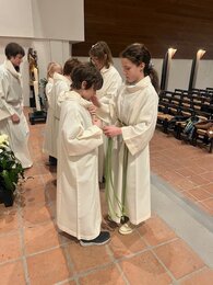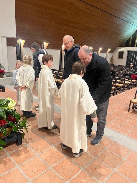 Während mehreren Proben haben sie sich auf diesen Dienst vorbereitet. Am Wochenende vom 7./8. Februar fand die feierliche Aufnahme in die Schar der Minis im Seelsorgeraum statt.